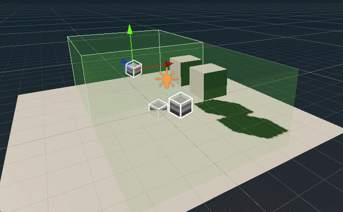 평면 위에 두 개의 로컬 볼륨이 있고 각 볼륨은 박스 형태의 콜라이더가 붙어있다.